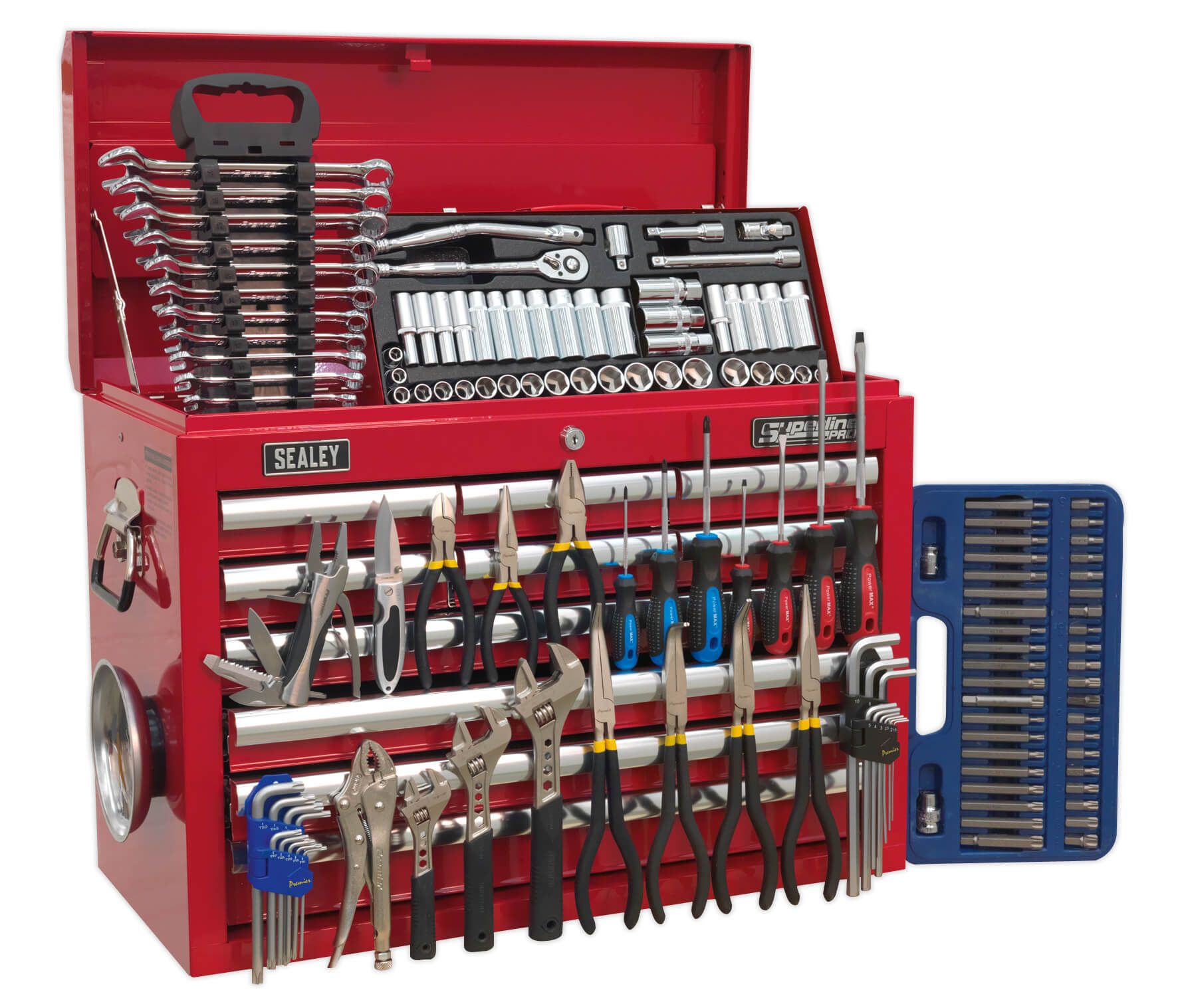 Package includes:Model No. AP33109Topchest 10 Drawer with Ball Bearing Slides - RedOverall Size (W x D x H): 660 x 315 x 485mm138pc Tool KitModel No. - DescriptionAK219 - TRX-Star/Spline/Hex Bit Set 42pc 3/8" & 1/2"Sq DriveAK231 - Magnetic Collector Ø150mmAK5040 - Screwdriver Set 7pc PowerMAX®AK63012 - Combination Spanner Set 12pc MetricAK6820 - Locking Pliers Curved Jaws 180mm 0-35mm CapacityAK692 - Socket Set 45pc 3/8"Sq Drive 6pt WallDrive® - DuoMetric®AK7137 - Hex Key Set 9pc Extra-Long MetricAK7162 - Security TRX-Star Key Set 9pc LongAK9452 - Adjustable Wrench 200mmAK9451 - Adjustable Wrench 150mmAK9453 - Adjustable Wrench 250mmAK930 - Needle Nose Pliers Set 3pc 280mm Ni-Fe FinishAK9333 - Pliers Set 3pc Ni-Fe FinishAK935 - Needle Nose Pliers 280mm Offset Ni-Fe FinishPK1 - Pocket Knife LockingPK10 - Multi-Tool 10 FunctionOther products of equivalent value will be supplied in the event that the promotion items should cease to be available.You may also refer to the individual Model No. for full specification.