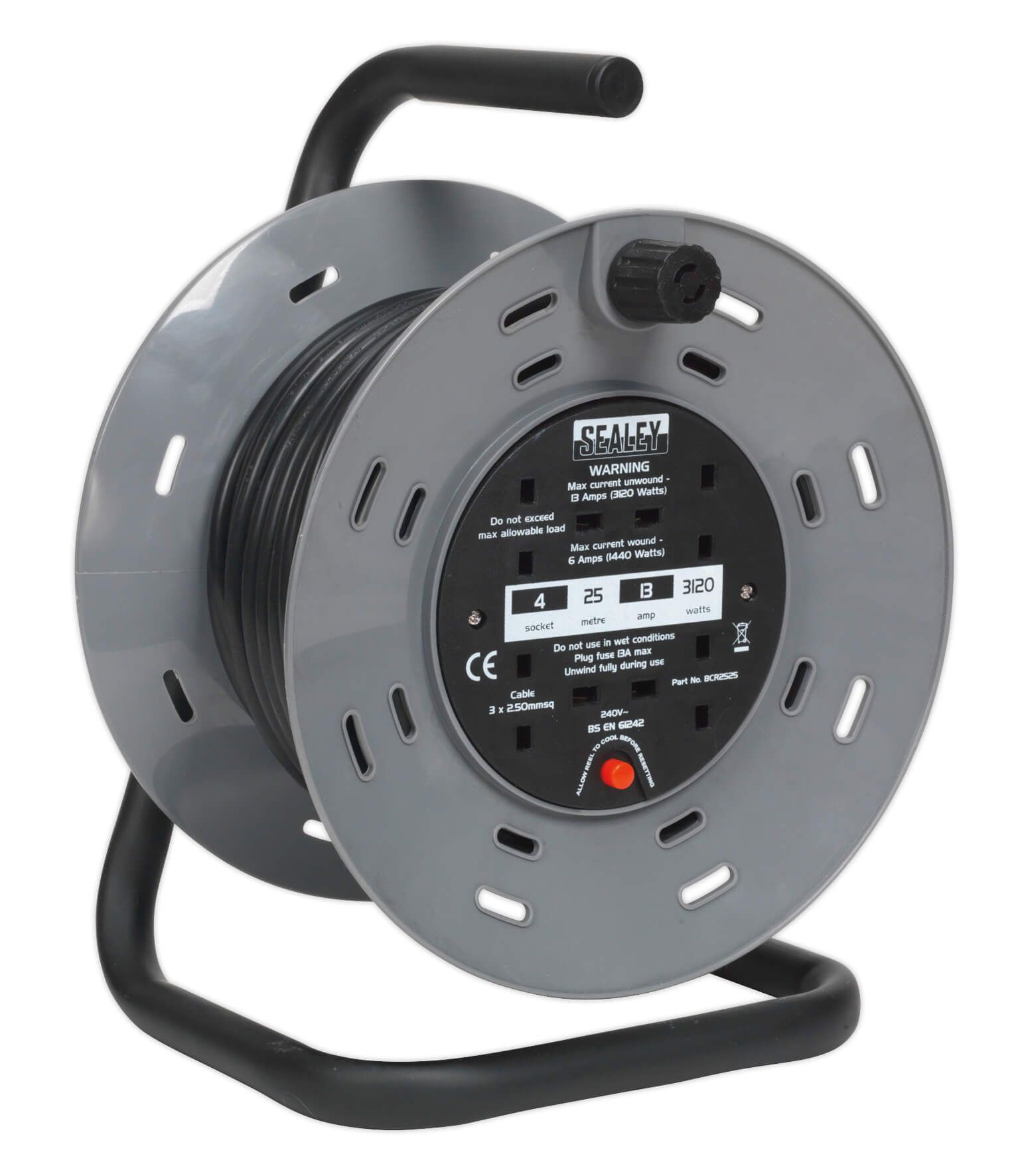 Sealey BCR2525 Cable Reel 25mtr 4 x 230V 2.5mm² Thermal Trip