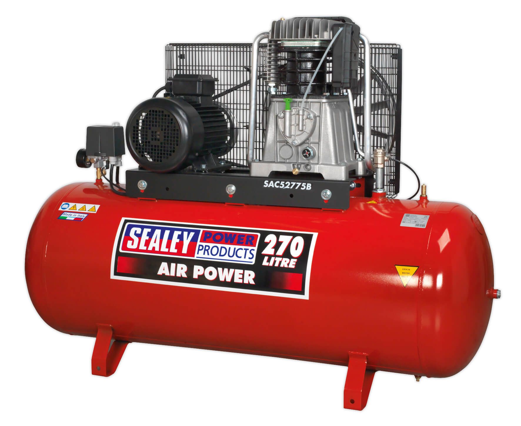 Sealey SAC52775B Compressor 270ltr Belt Drive 7.5hp 3ph 2 Stage with Cast Cylinders