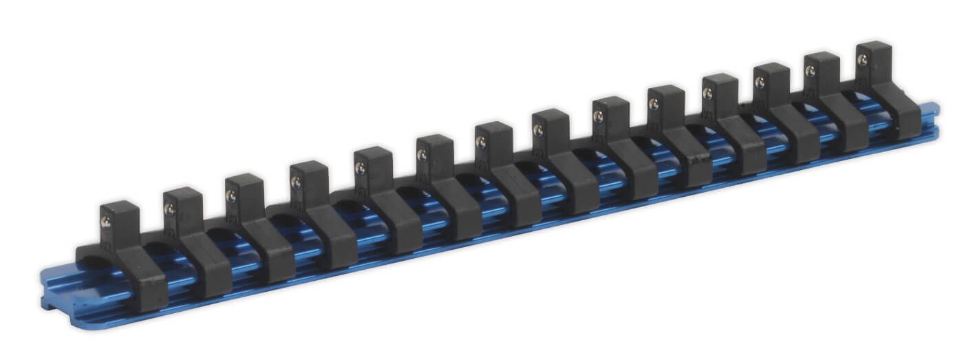 Sealey SR1414 Socket Retaining Rail with 14 Clips Aluminium 1/4"Sq Drive