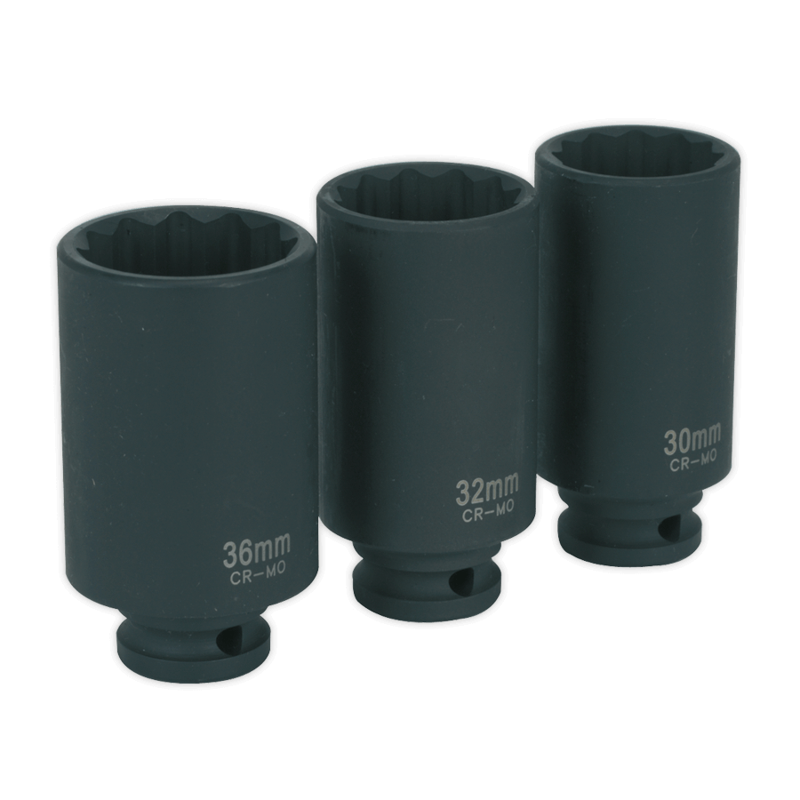 Sealey SX051 Impact Hub Nut Socket Set 3pc 12 Point 1/2"Sq Drive