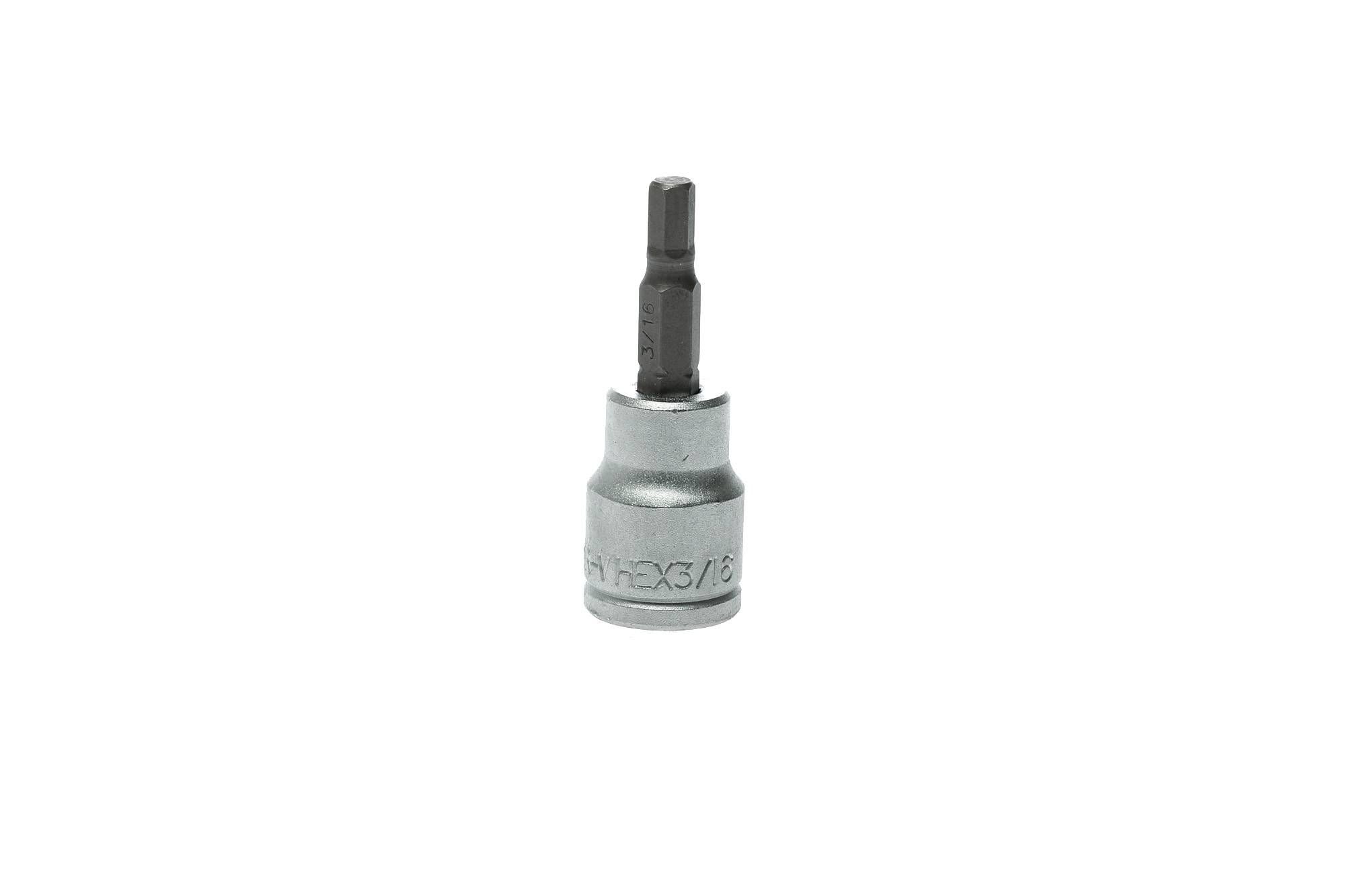 3/8" drive hex S2 socket bit made from chrome vanadium with a satin finish.
