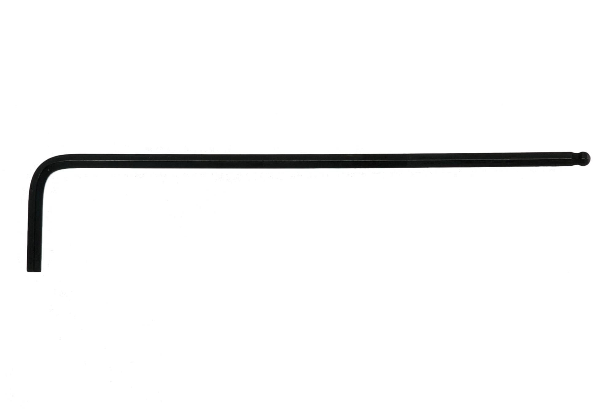 Individual black AF hex key wrench. Features a ball point head on the long end which permits turning at a 30° angle. Made from chrome vanadium.