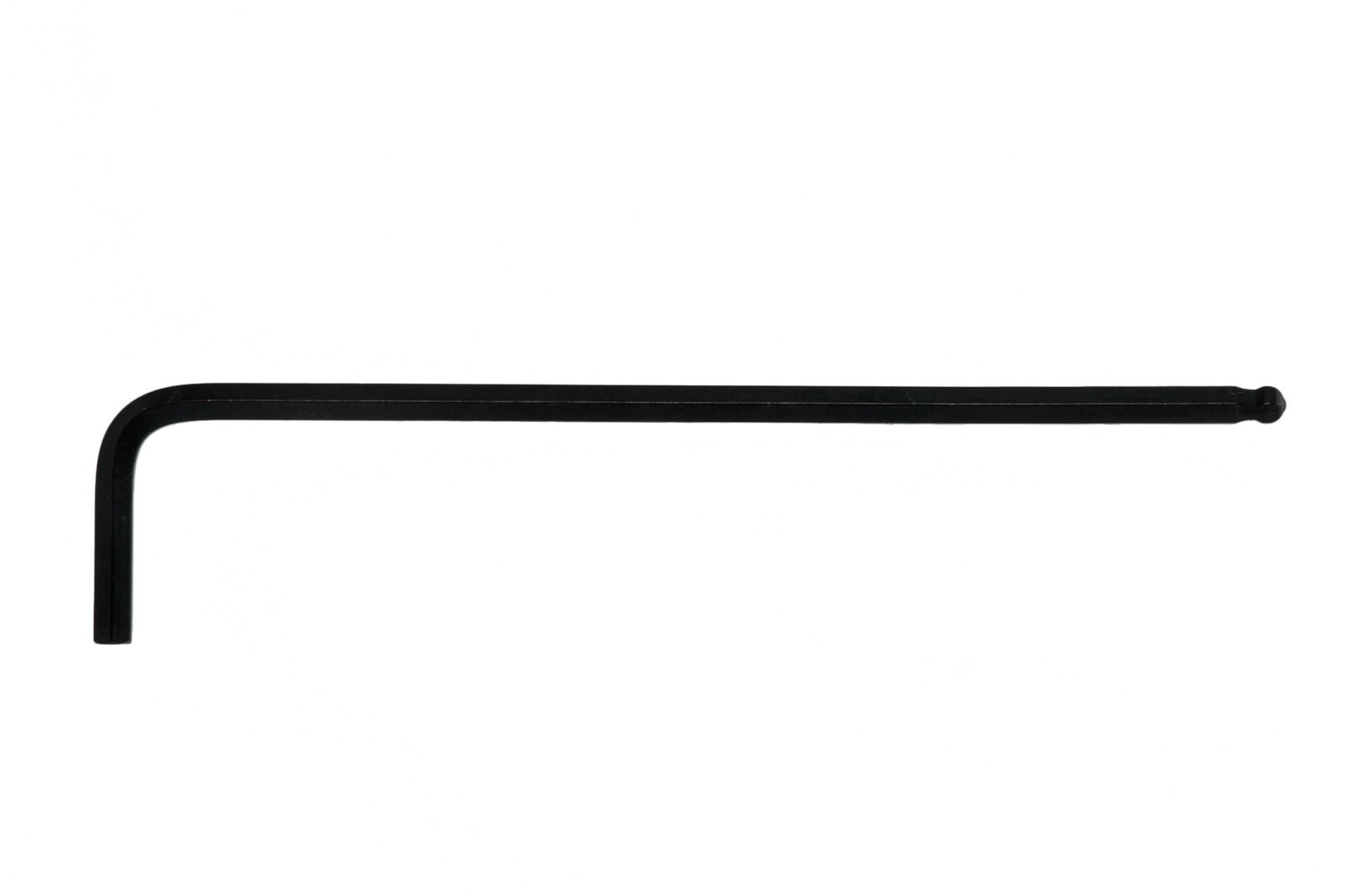 Individual black AF hex key wrench. Features a ball point head on the long end which permits turning at a 30° angle. Made from chrome vanadium.