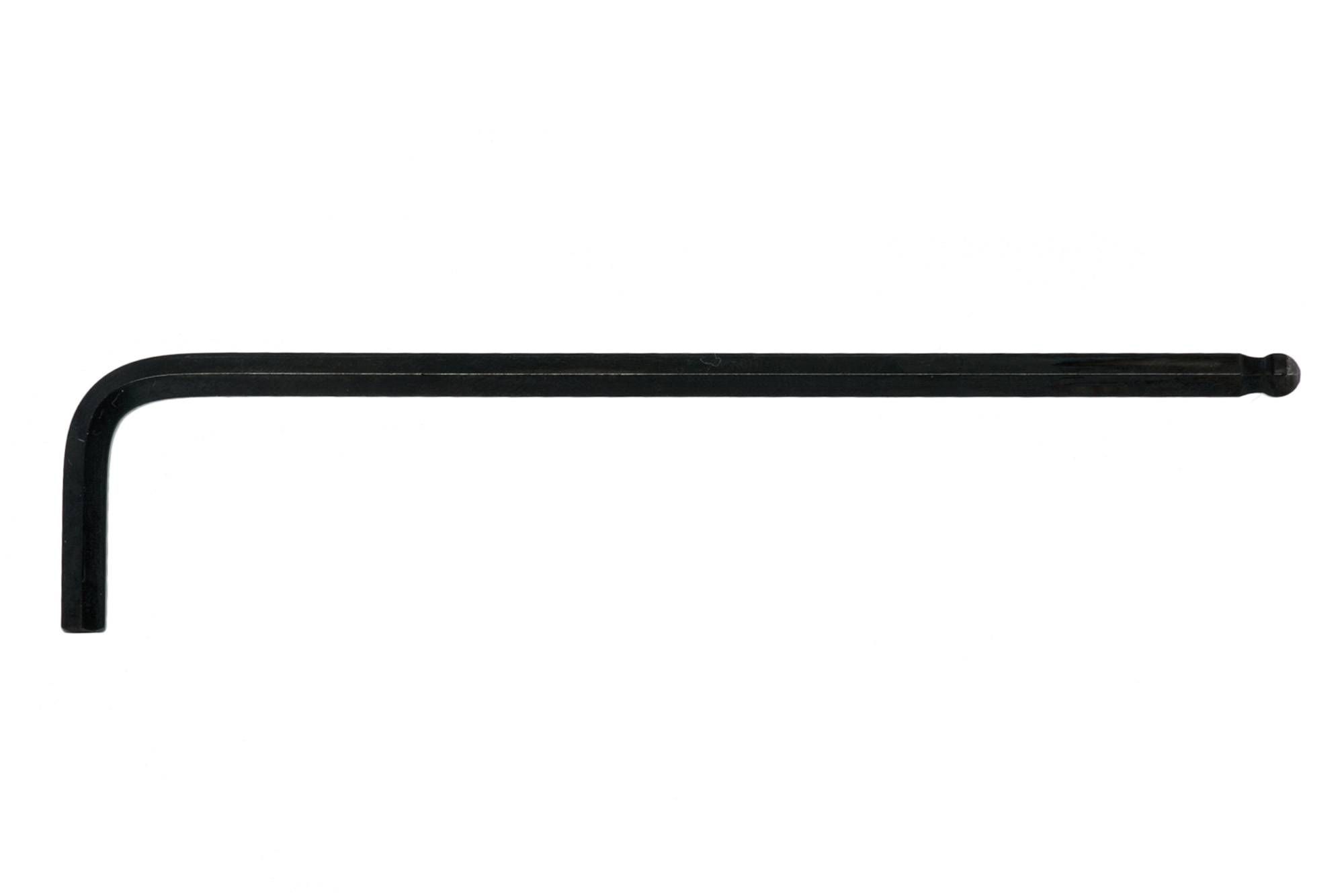 Individual black AF hex key wrench. Features a ball point head on the long end which permits turning at a 30° angle. Made from chrome vanadium.
