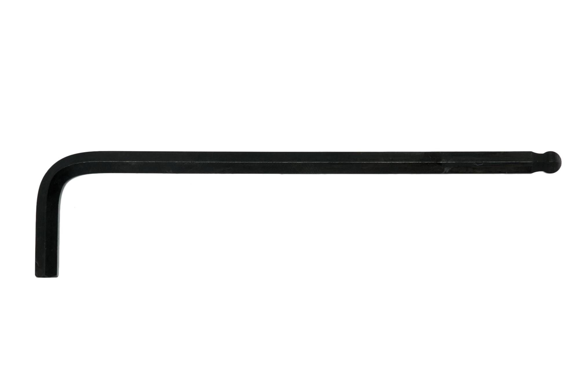Individual black AF hex key wrench. Features a ball point head on the long end which permits turning at a 30° angle. Made from chrome vanadium.
