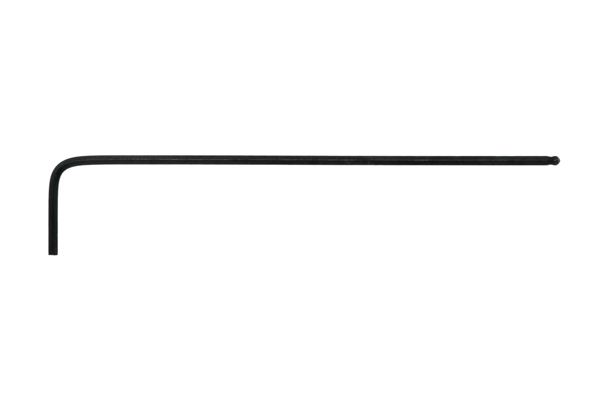 Individual black hex key wrench. Features a ball point head on the long end which permits turning at a 30° angle. Made from chrome vanadium.