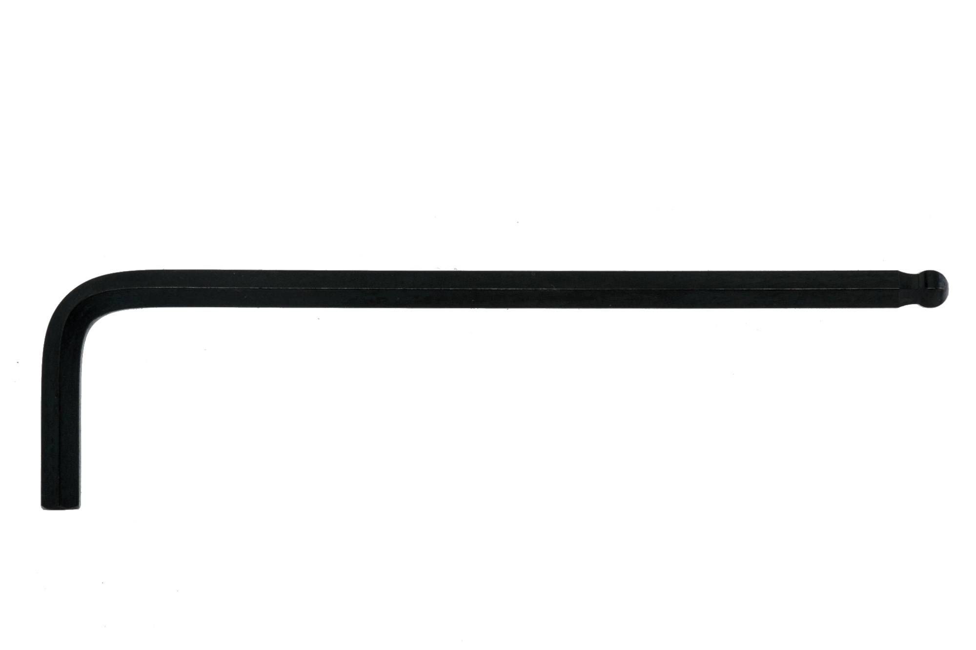 Individual black hex key wrench. Features a ball point head on the long end which permits turning at a 30° angle. Made from chrome vanadium.