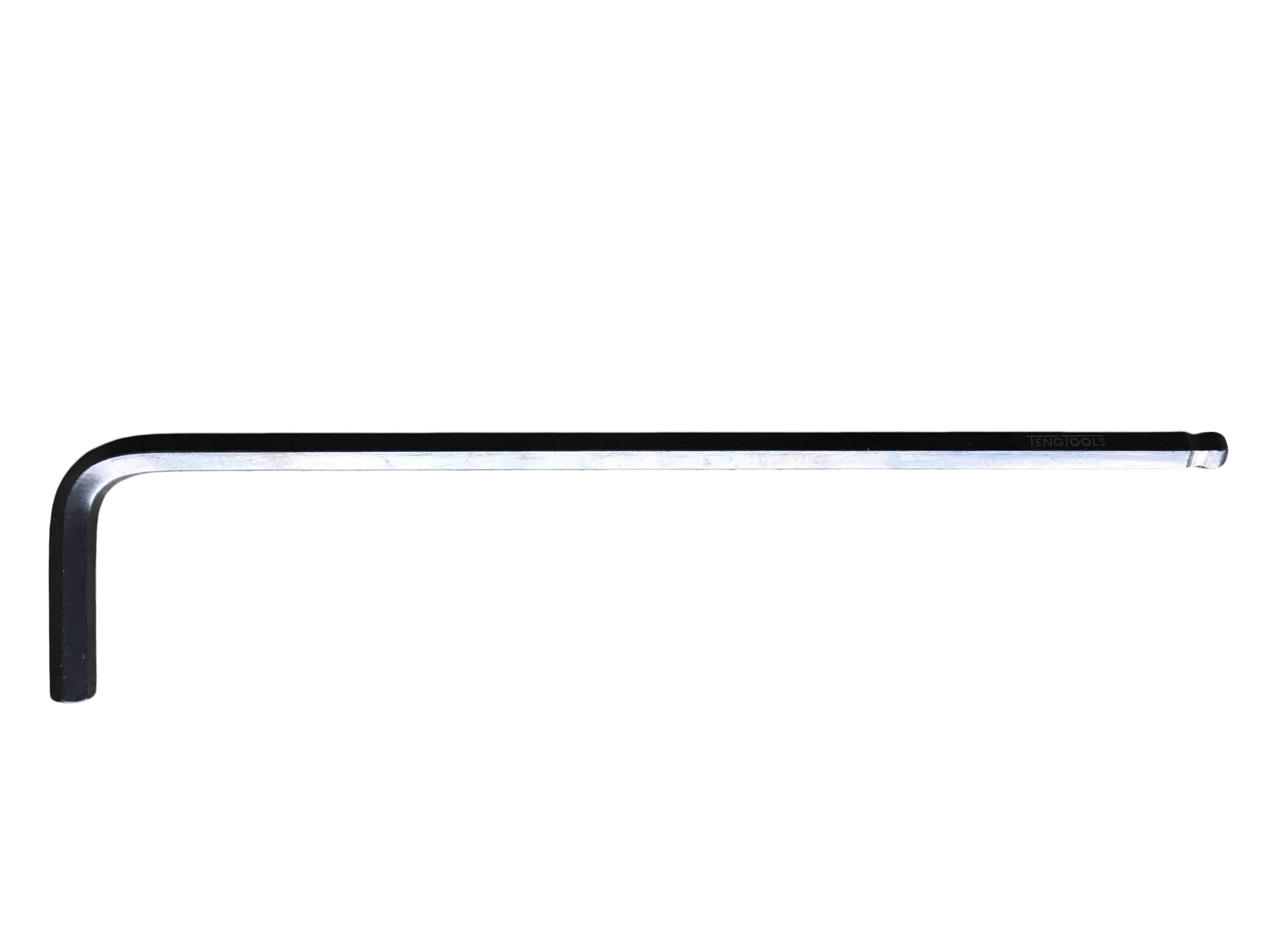 Individual AF hex key featuring a ball point end on the long end which permits turning at a 30° angle. The dimensions are clearly marked for easy identification. Made from chrome molybdenum for added strength.