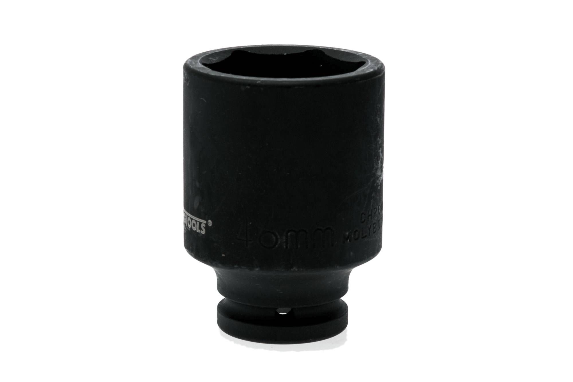 3/4" drive 6 point deep metric impact socket made from chrome molybdenum with a locking pin and retaining ring facility.