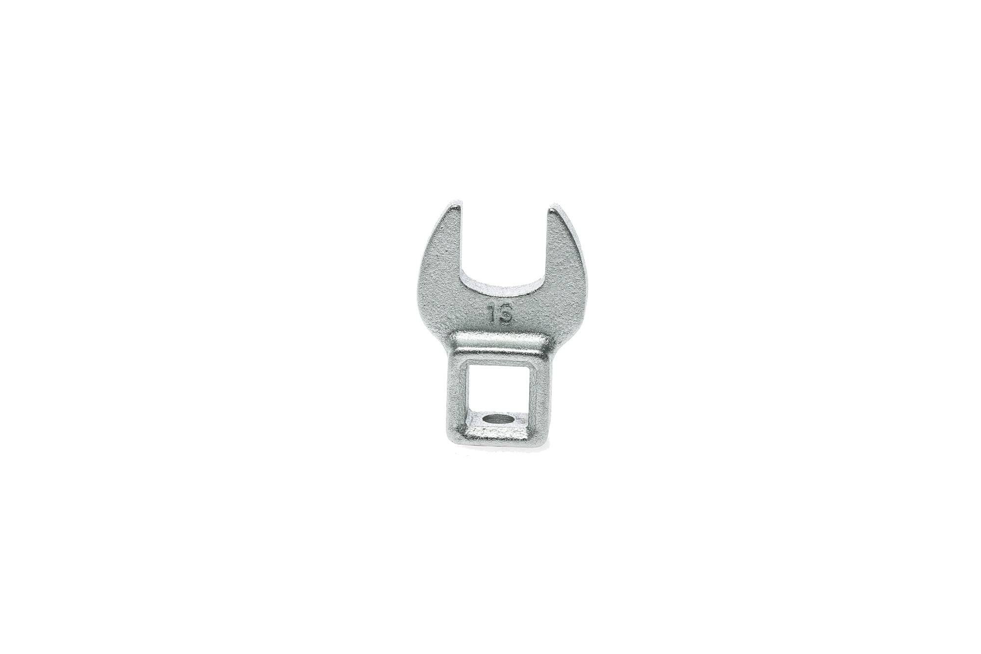 Metric crow foot wrench for tightening with socket tools e.g. extension bars and ratchet handles. Made from chrome vanadium with a satin finish.