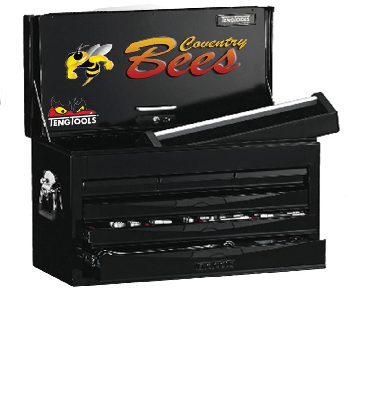 140 piece personalised service kit based on the regular TC8140NF tool kit containing 1/4", 3/8" and 1/2" socketry, spanners, pliers, screwdrivers, also including the TTPS09 tray set with adjustable wrenches, power grip pliers, utility knife, hack saw, hammers, a measuring tape and a steel rule. Supplied with the 8 series TC806NGM black ball bearing slide top box. All TC8140P kits are available with the option of having a personalised top box using vinyl cut stickers at no extra cost. This can be in the format of an image or logo, or may just be your name. This gives you the chance to have a toolbox that looks just the way you want it. Logos to be supplied as high resolution eps, crr, or ai vector format with cutting path if required. *Subject to artwork being supplied in the correct format.