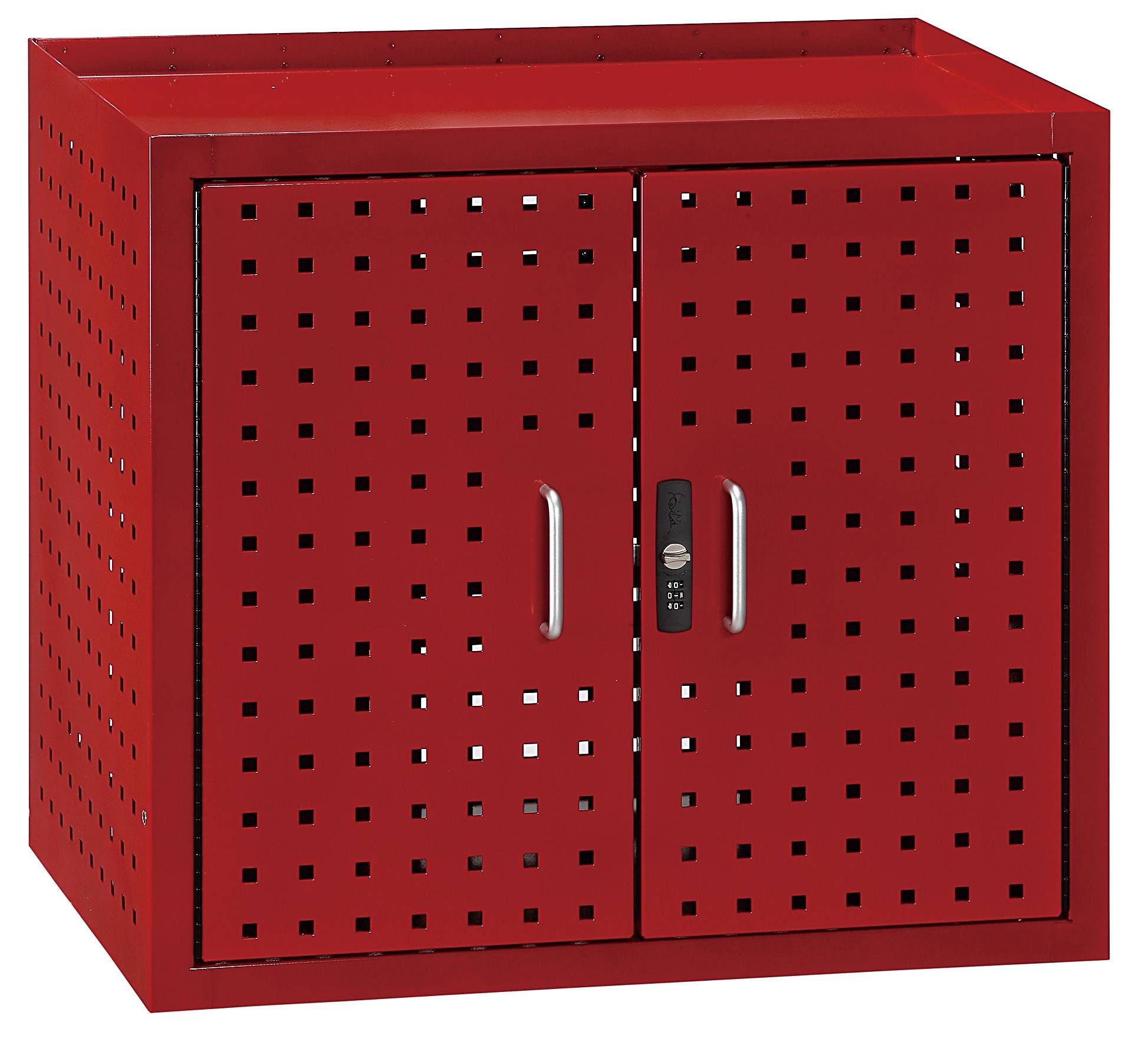 Fully lockable wall mounted tool cabinet equipped with a combination lock. The inside panel features square peg holes which follows the same system as the work bench panels and roller cabinet side plates outlined in the Teng Tools range.