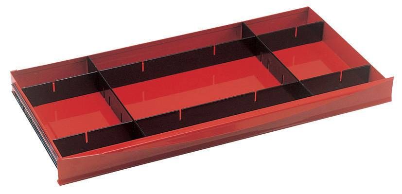 4 piece black divider set for top and middle box drawers. Sizes: 570x40x3mm 2 pieces, 272x40x3mm 2 pieces.