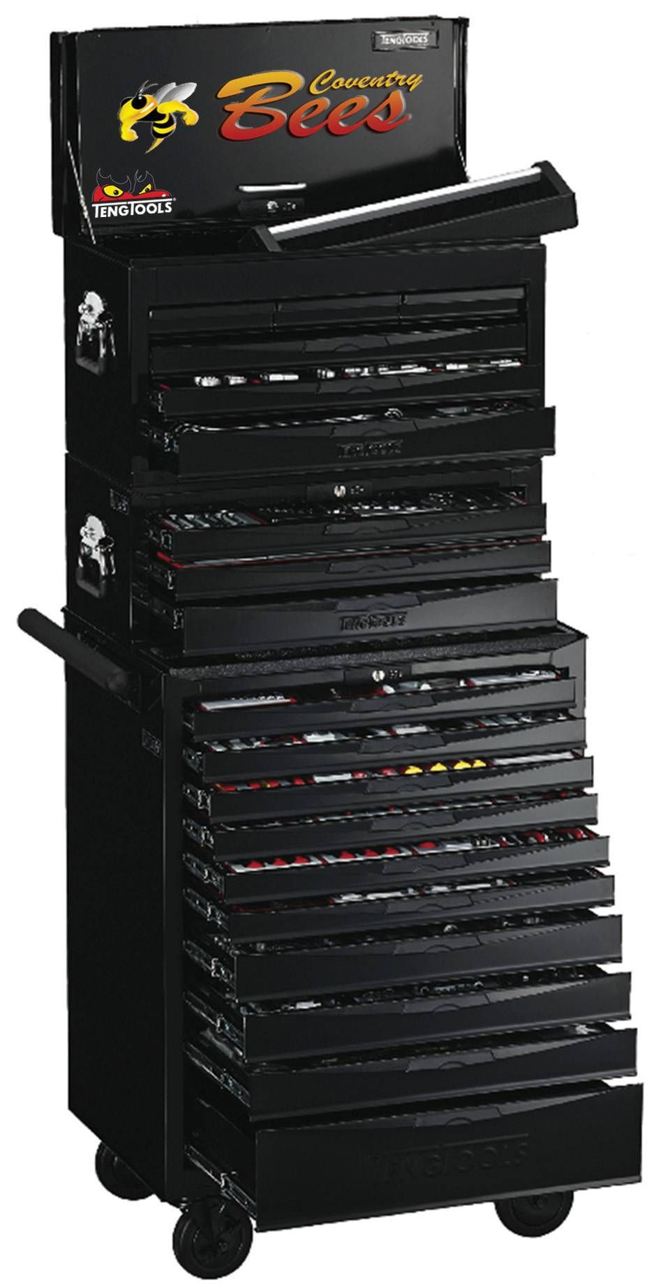 A 1001 piece tool kit, one of the most complete tool kits supplied in the Teng Tools range. Built up using the unique Teng Tools TT tray system and covering just about every tool most people ever need. Supplied in a TC819BK stack system of 8 series ball bearing top box/middle box/roller cabinet combination. All TCMM1001P kits are available with the option of having a personalised top box at no extra cost. This can be in the format of an image or logo, or may just be your name. This gives you the chance to have a toolbox that looks just the way you want it. Logos to be supplied as high resolution eps, crr, or ai vector format with cutting path if required. *Subject to artwork being supplied in the correct format.